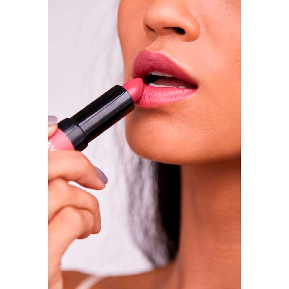 Labial en barra – Contiene mateca de Karité y Vitaminas E y C – Diseño único inspirado en un mantra personal – Hipoalergénicos – Libre de fragancia Beneficios: – Brinda un color intenso en un solo trazo. – Acabado Mate.