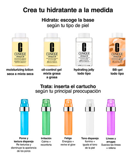 PASO 1: Selecciona tu hidratante Clinique ID, la que mas se adapte a tus necesidades.