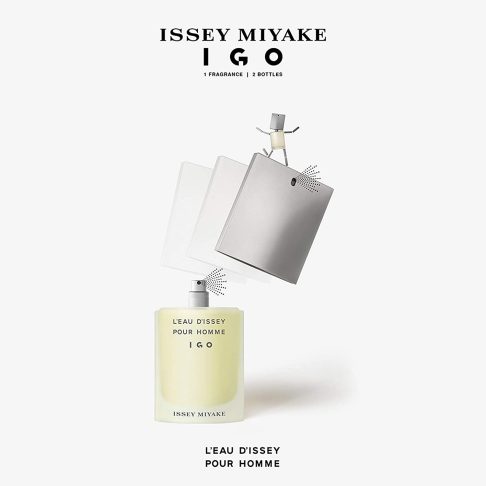 «Descubra lEau dIssey pour Homme, la fragancia atemporal de Issey Miyake, en un formato nuevo e innovador. Ofrece el equilibrio perfecto entre serenidad y notas.