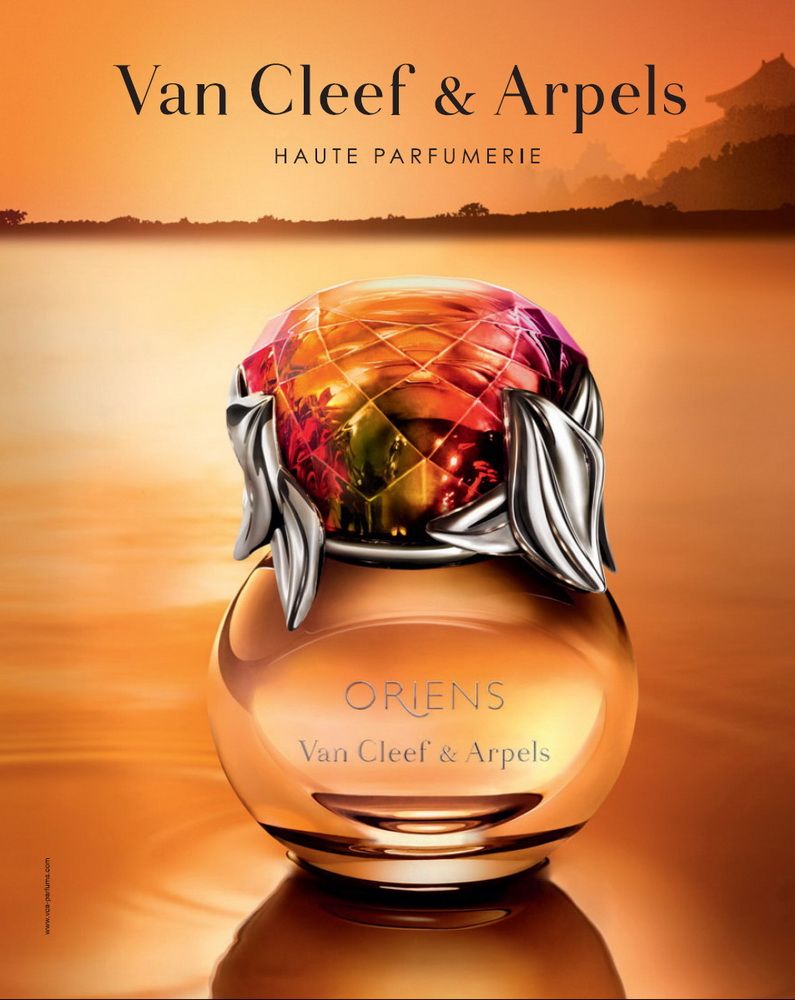 Oriens desea recrear olfativamente todo el esplendor de Oriente en un frasco de códigos de la alta joyería. Este, imponente, se inspira en un anillo de la marca, con una piedra multicolor engastada